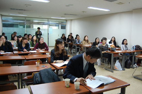 下午的分组讨论气氛更加热烈,参加人员是各孔子学院的公派教师和志愿者教师。按照对外汉语词汇教学、对外汉语语法教学、对外汉语文化教学、对外汉语课堂教学技巧分为四个讨论小组,每组讨论均由韩方院长主持,由中方院长作总结发言,每组有8位老师分别做了精彩的演讲。论文涉及的学术和教学实践领域非常广泛,内容丰富,有的老师结合自己在中国以多国留学生为对象的教学中所获得的经验,有的老师则是专门针对韩国学生的特点,总结出了自己独到的见解,讨论的时候老师们纷纷踊跃提问,气氛热烈。